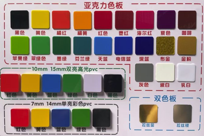亚克力: 由于其高透明度和优越的外观,亚克力常用于制作透明的产品,如广告牌、照片框、展示盒、灯罩等。同时,亚克力还在建筑领域中用于制作玻璃替代品,如隔断、橱窗等。